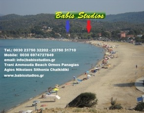 Στην εξαιρετική παραλία της Τρανής Αμμούδας Αγίου Νικολάου Σιθωνίας Χαλκιδικής, βρίσκονται τα διαμερίσματα Babis Studios τα οποία αποτελούνται από δύο κτίρια.